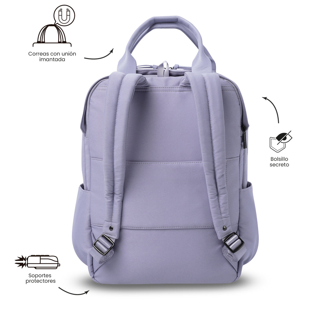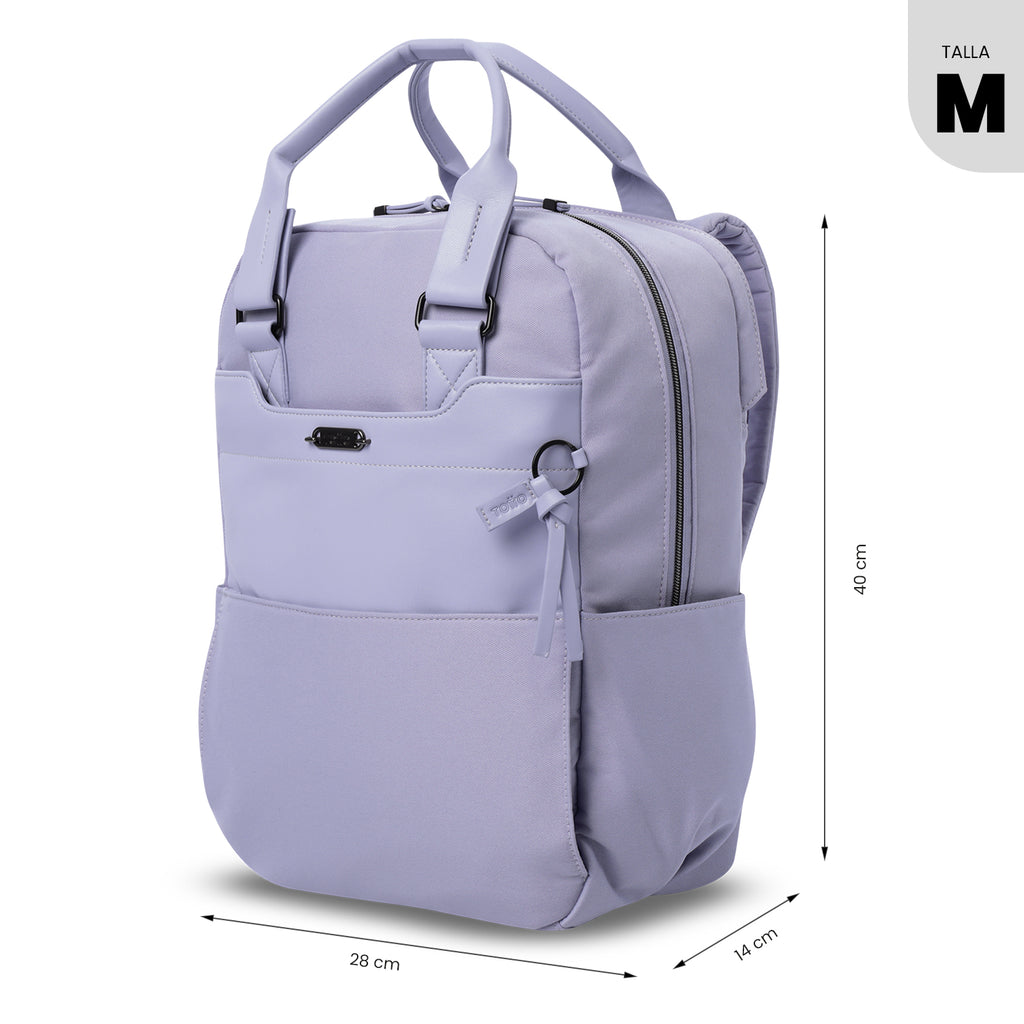 ¡El morral para mujer Toscana te ofrece practicidad! Ideal para llevar tus objetos más importantes, este modelo mediano incluye un bolsillo para tu portátil de 14", bolsillo secreto, bolsillo interno plano y espacio para botella o sombrillas. Su diseño cuenta con un cierre imantado, soportes protectores en la base y pasador para sistema de ruedas. Fabricado con materiales de calidad te brinda calidad. ¡Llévalo contigo a donde quieras!