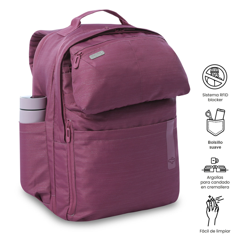 ¡Llévalo siempre contigo! El morral viajero Elan es perfecto como equipaje de artículo personal. Su diseño compacto y funcional incluye compartimiento exclusivo para tu portátil de hasta 16 pulgadas, correas de compresión internas que aseguran el contenido, y pasador trasero para ajustarlo a la manija telescópica de tu equipaje. Fabricado en poliéster, es resistente, ligero y práctico para trayectos urbanos o de viaje. ¡Empaca sin esfuerzo!