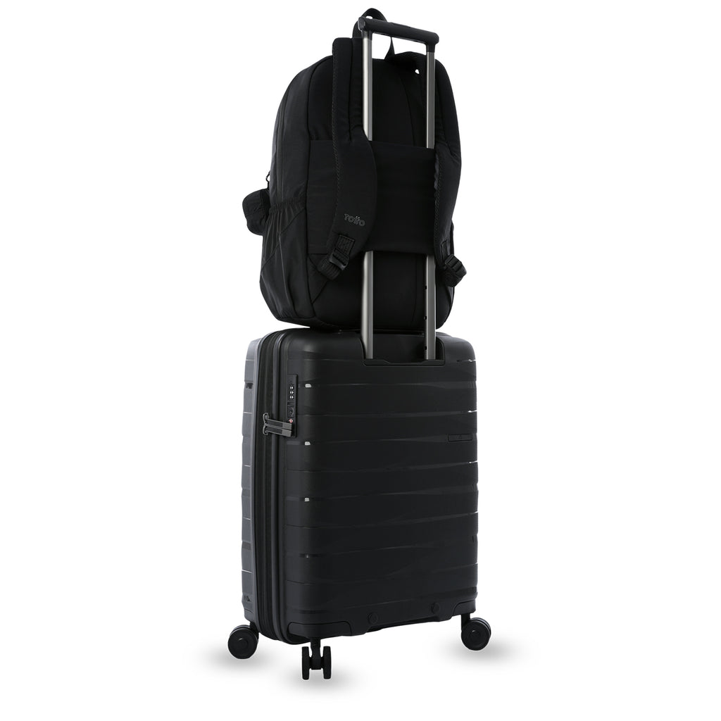 ¡Eleva tu día con practicidad! El morral grande Suzuka está fabricado en poliéster de tacto suave y su forro RPET está hecho con botellas recicladas. Cuenta con compartimiento para laptop de hasta 16 pulgadas, bolsillo secreto, porta botella, organizador portallaves y pasador para sistema de ruedas. Incluye un llavero tipo monedero, perfecto para llevar audífonos u objetos pequeños. Diseñado para acompañarte con comodidad. ¡Hazlo tu compañero ideal!