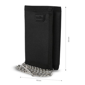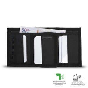 ¡Funcionalidad que se adapta a tu ritmo! La billetera para hombre Riva Mee mediana tres cuerpos integra un cierre en velcro con diente plástico, cadena para mosquetón, bolsillo para monedas y sistema RFID Blocker. Su forro RPET y materiales resistentes, ofreciéndote durabilidad y fácil cuidado. La marquilla Totto en goma aporta detalle visual. ¡Lleva seguridad donde la necesites!