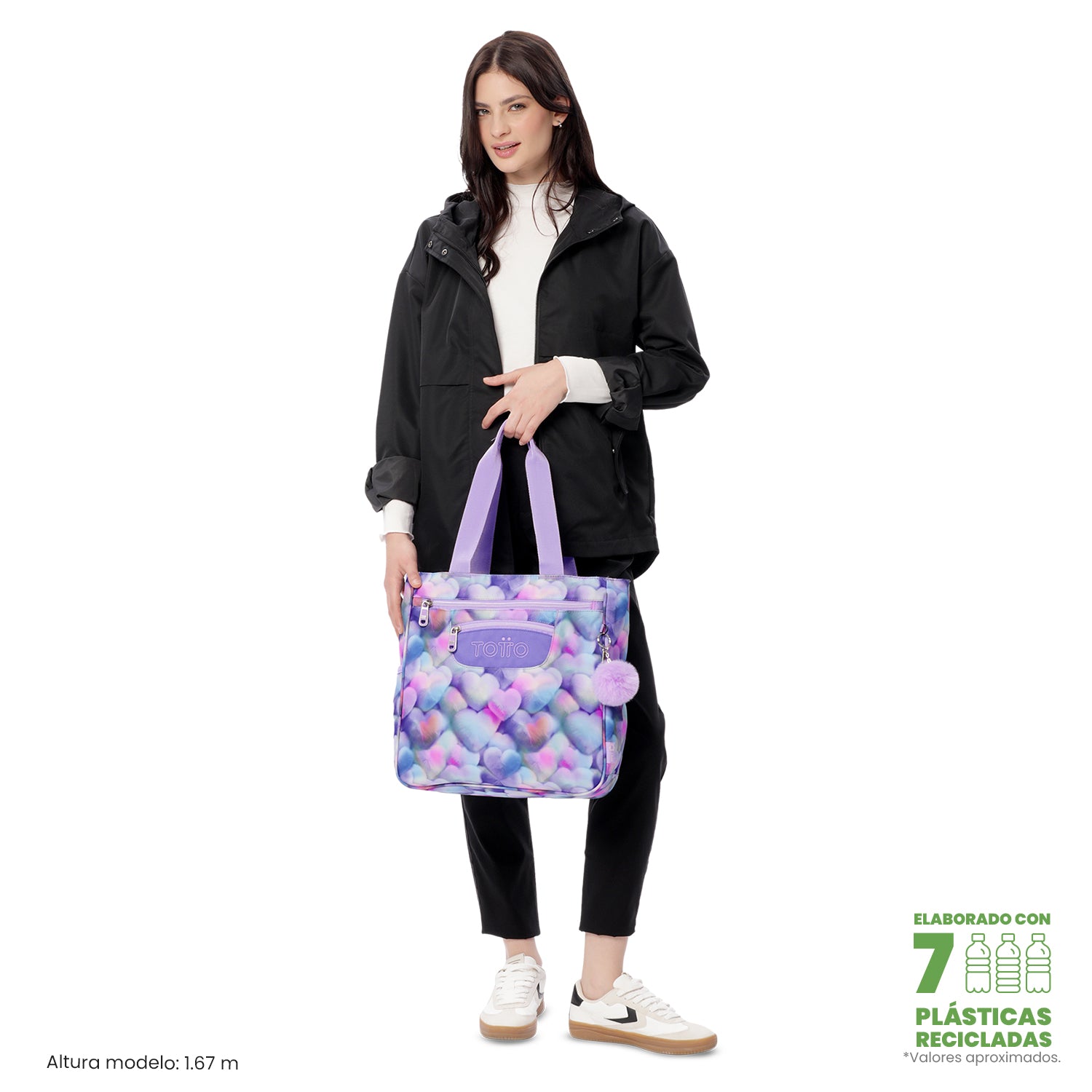 ¡Lleva tus esenciales con estilo y practicidad! El bolso de hombro Cutara grande está elaborado en lona RPET reciclada de 7 botellas, combinando durabilidad y conciencia ambiental. Incluye compartimento para PC de 14 pulgadas, dos bolsillos frontales con cremallera, bolsillo posterior de fácil acceso, bolsillos laterales y llavero en goma. Sus correas permiten llevarlo en mano o brazo. ¡Llévalo ahora mismo!