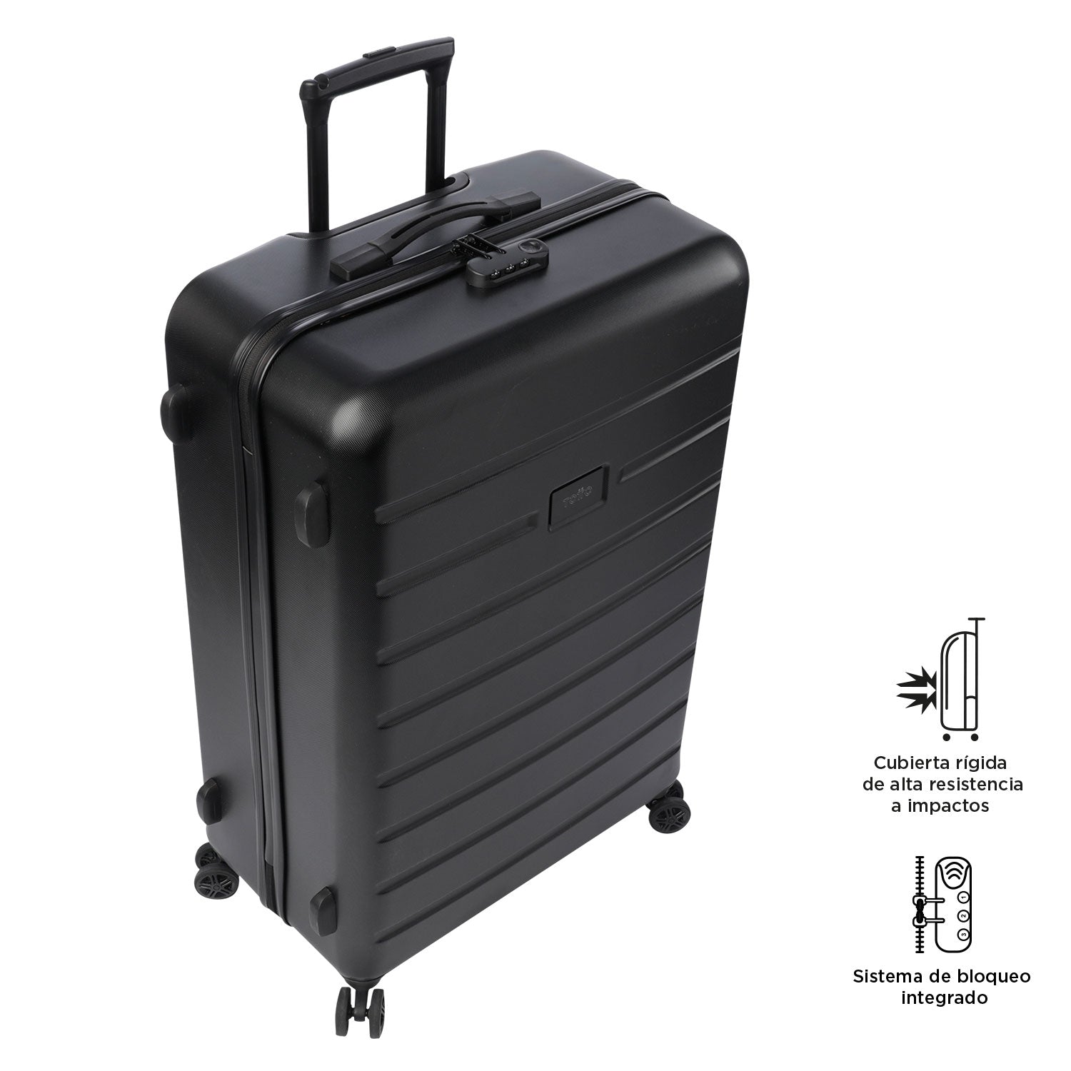 La maleta de viaje 360 Harbor hace de tus viajes una experiencia cómoda. Diseñada con 4 ruedas dobles de rotación 360 y una manija telescópica ajustable, permite un fácil manejo. Su interior, forrado en poliéster, incluye tapa en malla y correas de ajuste para mantener el orden. Fabricada en material (ABS + policarbonato) resistente a impactos, cuenta con candado de 3 dígitos. No olvides registrar tu maleta en bodega. ¡Elige la tuya hoy!