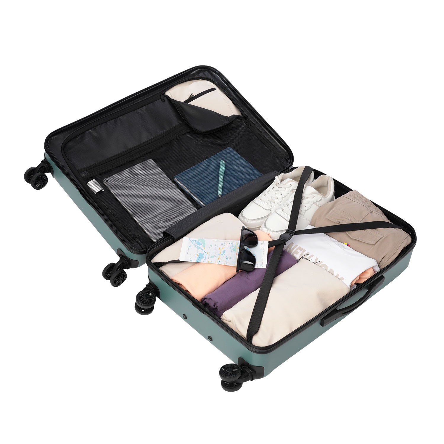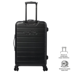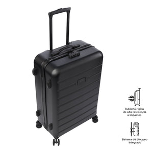 La maleta de viaje mediana 360 Harbor cuenta con un diseño incluye 4 ruedas dobles con rotación 360 para un manejo ágil, una manija telescópica ajustable y un candado de 3 dígitos. Internamente, está forrada en poliéster y equipada con una tapa en malla y correas de ajuste para mantener todo organizado. Fabricada en material (ABS + policarbonato) resistente a impactos y diseñada para acompañarte en cualquier destino. ¡Viaja con confianza!
