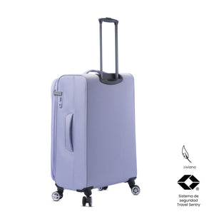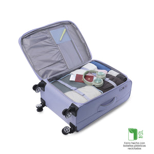 ¡Explora sin complicaciones con la maleta de viaje mediana 360 Liviana! Fabricada en poliéster de alta calidad, es ideal para registrar y llevar en bodega. Cuenta con múltiples bolsillos de acceso rápido, expansión y sistema de doble rueda 360 para mayor movilidad. Su manija telescópica ajustable y el candado TSA brindan seguridad adicional. Internamente, cuenta con división en cremallera y forro en material RPET para organizar tus pertenencias.