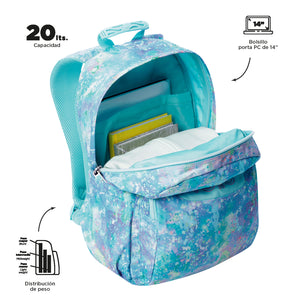 Morral Juvenil Porta PC 14" Acuarela Azul