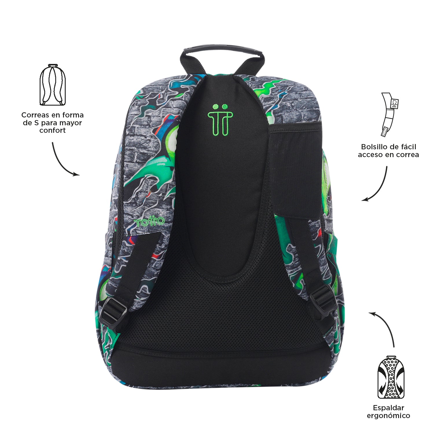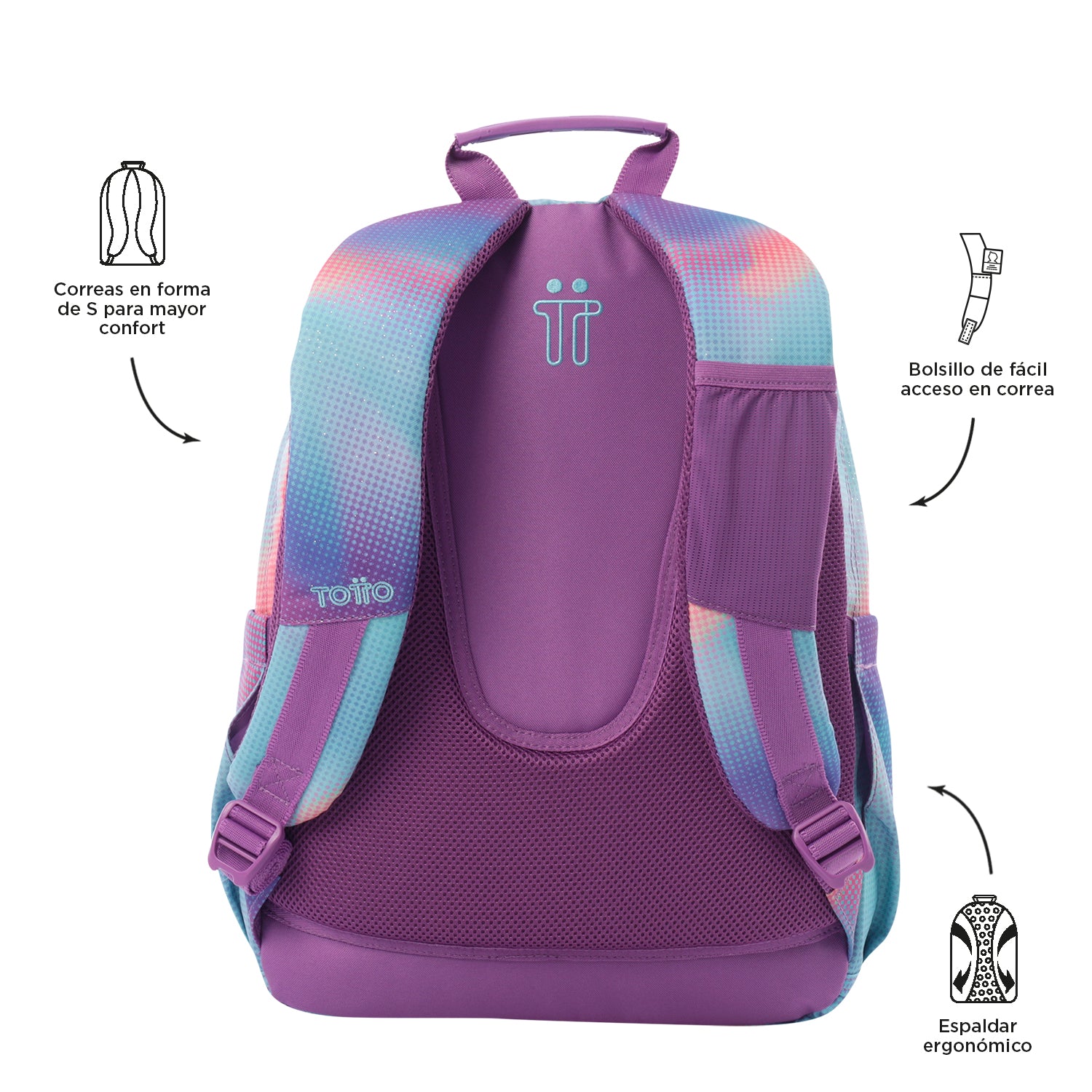 ¡Consigue tu maleta para el colegio ahora! Este morral es ideal para llevar tu portátil de 14" con total seguridad. Fabricado con lona RPET, producto de 10 botellas recicladas, tiene una capacidad de 20 litros y ofrece bolsillos frontales de acceso rápido, organizador con portallave, compartimento para botella y correas ergonómicas con Air Mesh que aseguran mayor comodidad. ¡Perfecto para tu día a día!