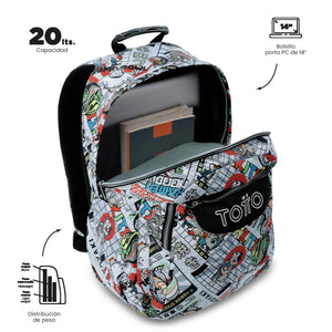 ¡Consigue tu maleta para el colegio ahora! Este morral es ideal para llevar tu portátil de 14 pulgadas con total seguridad. Fabricado con lona RPET, producto de 10 botellas recicladas, tiene una capacidad de 20 litros y ofrece bolsillos frontales de acceso rápido, organizador con portallaves, compartimento para botella y correas ergonómicas con Air Mesh, al igual que su espaldar, para brindarte mayor comodidad. ¡Perfecto para el día escolar!