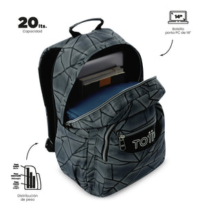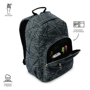 ¡Lleva tus útiles escolares de forma cómoda y segura! La maleta para colegio Acuarela grande y resistente, está elaborada en lona RPET reciclada de 10 botellas. Cuenta con organizador con portallaves, bolsillo para botella, bolsillo en correa para carnet o tarjeta, y bolsillos frontales de acceso rápido. Su capacidad de 20 L, espaldar y correas ergonómicas con air mesh ofrecen confort durante el día. ¡Cómprala ahora y organiza tu día!