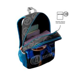 ¡Lleva el poder de Capitán América al colegio! Este morral mediano tiene un increíble diseño termoformado e un compartimiento principal con doble cremallera. Sus correas acolchadas e la manija en reata permiten llevarlo cómodamente. Cuenta con bolsillos laterales para botellas e un bolsillo frontal con cremallera para organizar útiles. Además, incluye un llavero en goma con la forma del icónico escudo del superhéroe. ¡Perfecto para los días de clases!