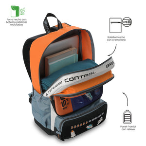 ¡Prepárate para llevarlo todo con comodidad y diversión! El morral Gemini cuenta con compartimento principal con doble cremallera, bolsillo frontal y laterales porta botellas. Su panel frontal termoformado con astronauta, correas acolchadas ajustables y forro RPET hecho con botellas recicladas lo hacen práctico y sostenible. Incluye sistema de pines extraíbles y llavero tipo mosquetón interactivo para personalizarlo. ¡Perfecto para tu pequeño!