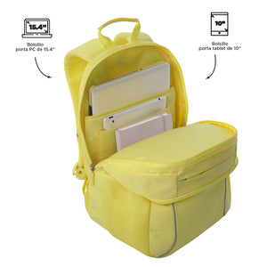 El morral Cambri 2.0 es la opción perfecta para quienes buscan funcionalidad y estilo. Este maletín juvenil, fabricado con lona RPET proveniente del reciclaje de 11 botellas de plástico, cuenta con bolsillo para PC de 15.4", compartimento para tableta de 10" y bolsillo suave para objetos delicados. Su diseño ergonómico incluye correas en forma de S, espaldar acolchado, reflectivo y organizador con portallave. ¡Hazlo tuyo!