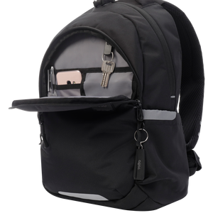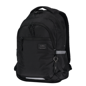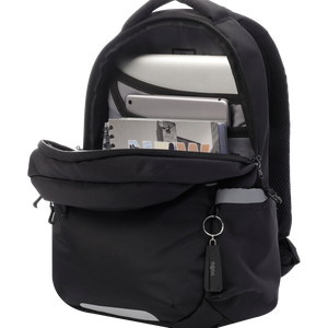¡Para jóvenes que lo quieren todo! Esta mochila tiene un compartimento principal con cierre, doble slider y hebilla de seguridad, bolsillo porta PC de 14”, porta tablet de 10”, compartimento frontal con múltiples organizadores, salida de audio y bolsillo frontal plano. Fabricado en lona, contiene partes realizadas con RPET (Recycled Polyethylene Terephthalate) el cual es un material reciclado de las botellas de plástico, espaldar acolchado con bolsillo secreto, correas ajustables y apliques reflectivos. ¡El mundo espera por ti!