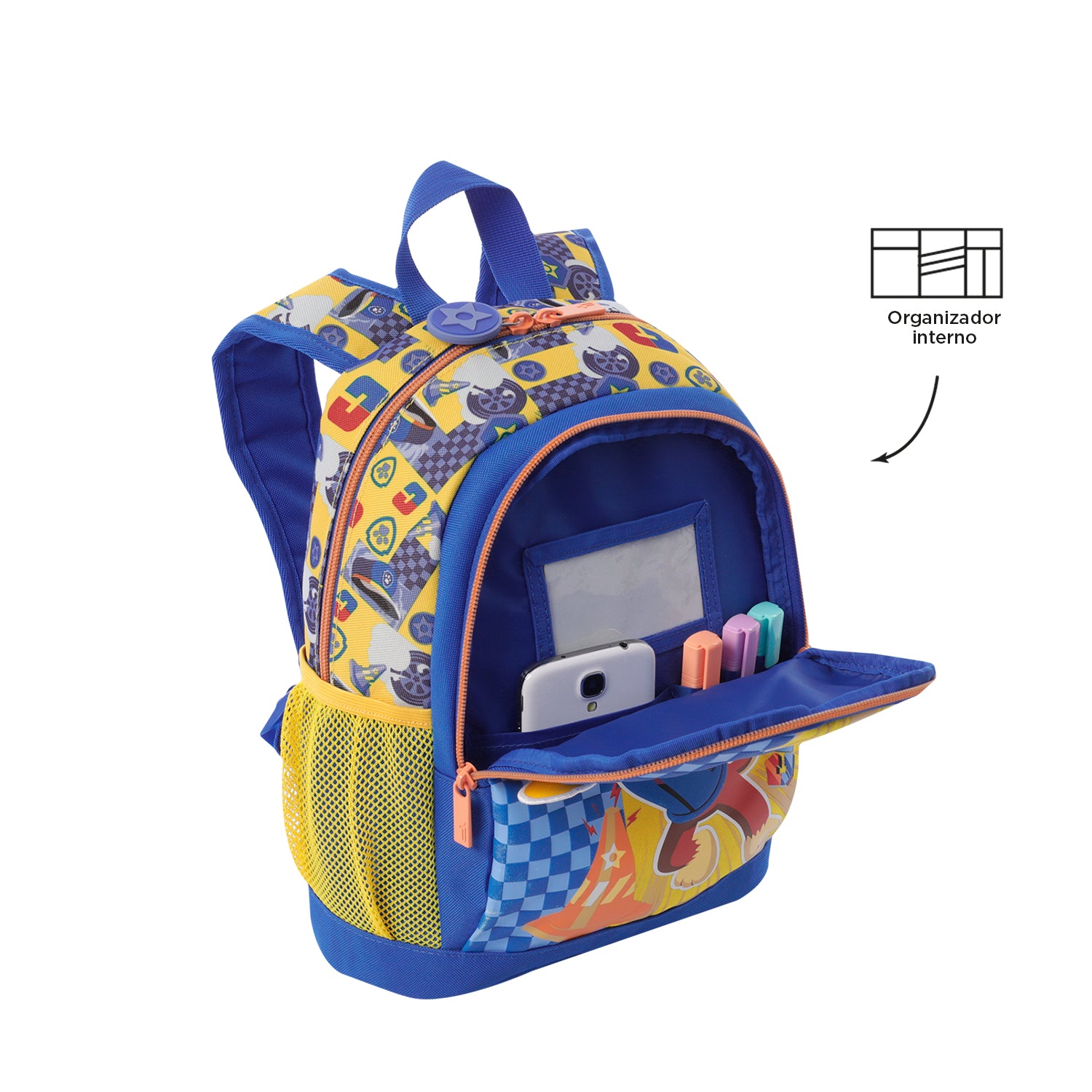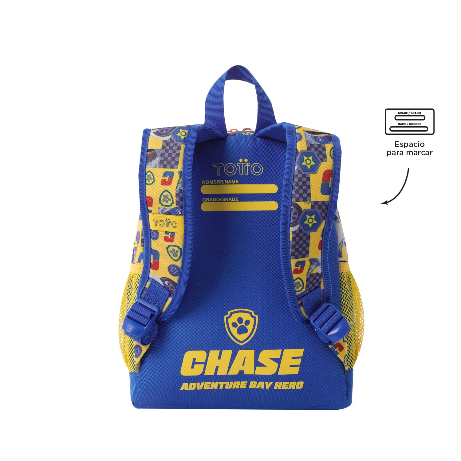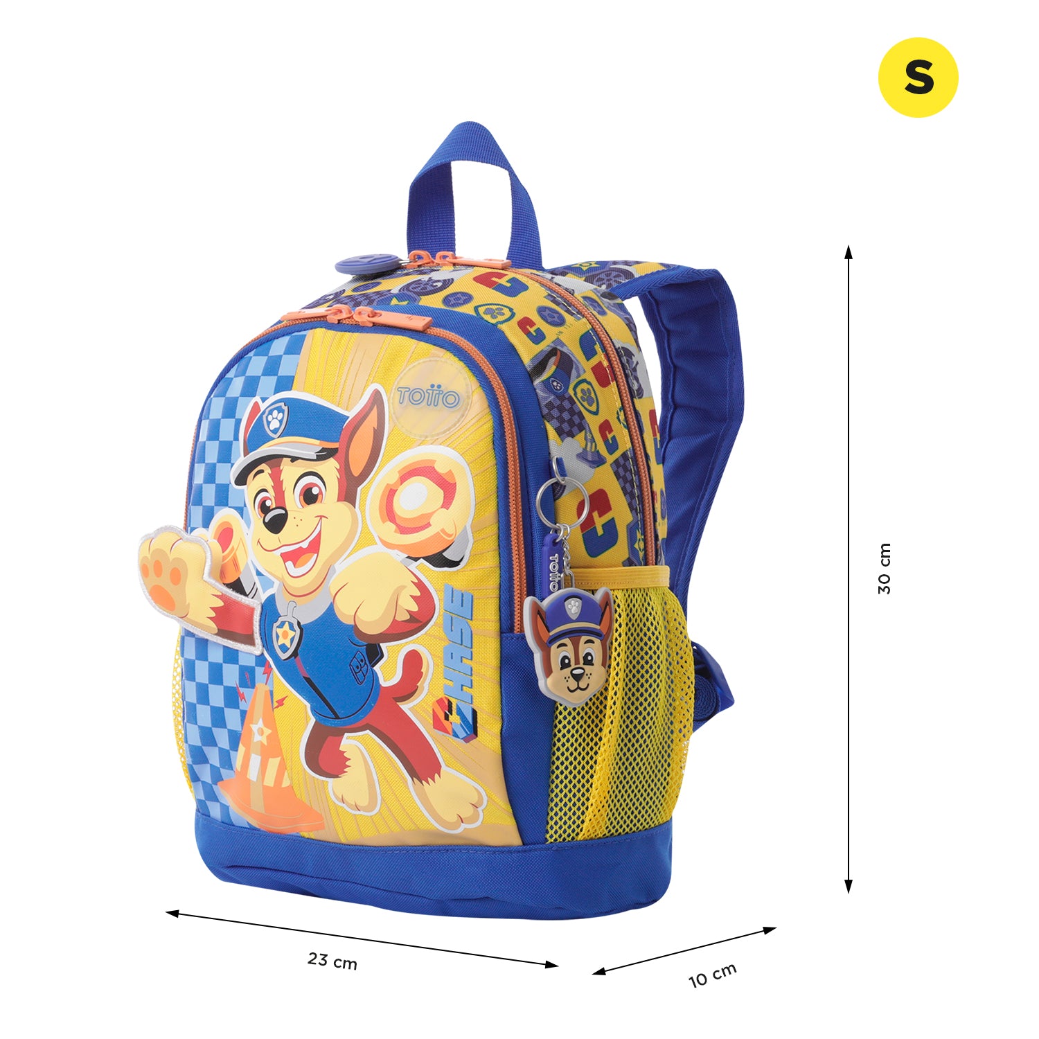 El morral Paw Patrol Chase es perfecto para niños en edad preescolar. Fabricado en poliéster, presenta un diseño con estampado completo y piezas interactivas del personaje. Cuenta con un amplio compartimento principal de doble cremallera, correas acolchadas ajustables, bolsillos laterales para botellas, y un llavero en goma. ¡Lleva toda la diversión al colegio!