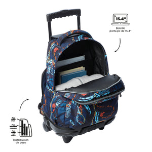 Morral Ruedas Niño Porta PC 15.4" Bomper Renglones Azul