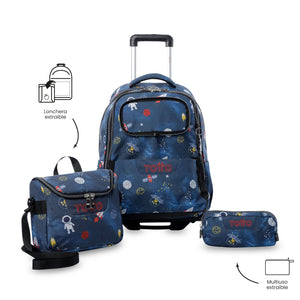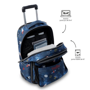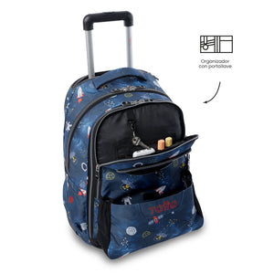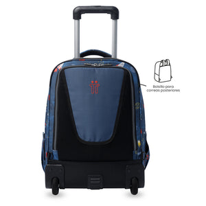 ¡Prepara a tu pequeño para sus días escolares con la maleta para el colegio Carta! Este morral de ruedas, ideal para niños, cuenta con un compartimiento porta PC de 15.4 pulgadas y espacio para tableta de 10 pulgadas. Hecho con lona RPET reciclada, incluye portalápices, organizador con portallaves, lonchera extraíble y soportes protectores. La manija telescópica y los protectores de correas brindan mayor comodidad. ¡Consíguelo ahora!