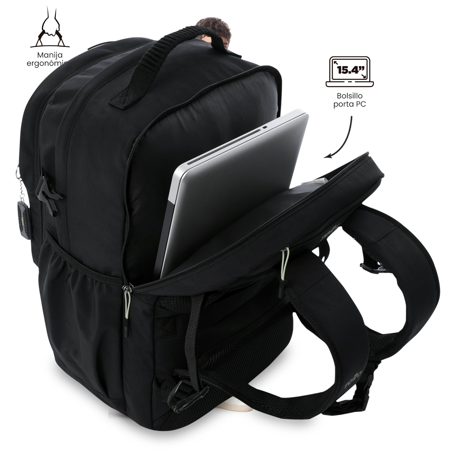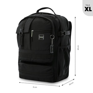 ¡Adáptate a cualquier entorno! El morral Spa combina funcionalidad táctica y resistencia gracias a su confección en poliéster con revestimiento y forro RPET hecho con botellas recicladas. Incluye compartimento para laptop de 15.4 pulgadas, organizador con portallaves, correas de pecho, espaldar ergonómico, bolsillo de malla, protección para lluvia, espacio para botella y reata multipropósito. ¡Listo para tu rutina!