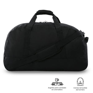 ¡Empaca fácil! La tula de viaje Active está confeccionada en poliéster resistente, ideal para acompañarte en cada trayecto. Con 54 litros de capacidad, ofrece gran espacio y múltiples bolsillos organizadores para guardar todo de forma práctica y ágil. Su diseño funcional y liviano permite transportarla cómodamente. Antes de volar, revisa sus medidas con tu aerolínea. ¡Hazla parte de tu próximo destino!