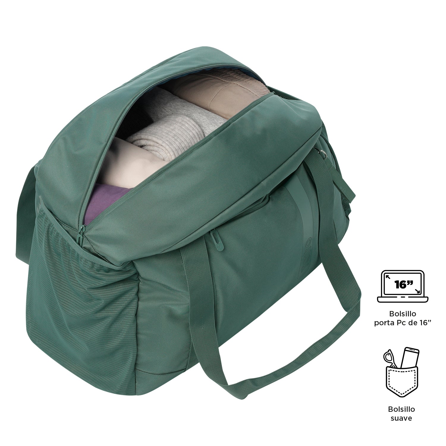 La tula de viaje Elan es una opción versátil para quienes buscan funcionalidad. Este modelo grande incluye un bolsillo especial para portátil de 16 pulgadas, un bolsillo secreto para mayor seguridad y un pasador que permite fijarla a un sistema de ruedas. Además, cuenta con un bolsillo suave para proteger objetos delicados. Fabricada en poliéster ofrece resistencia y durabilidad. ¡Llévala contigo en cada aventura!